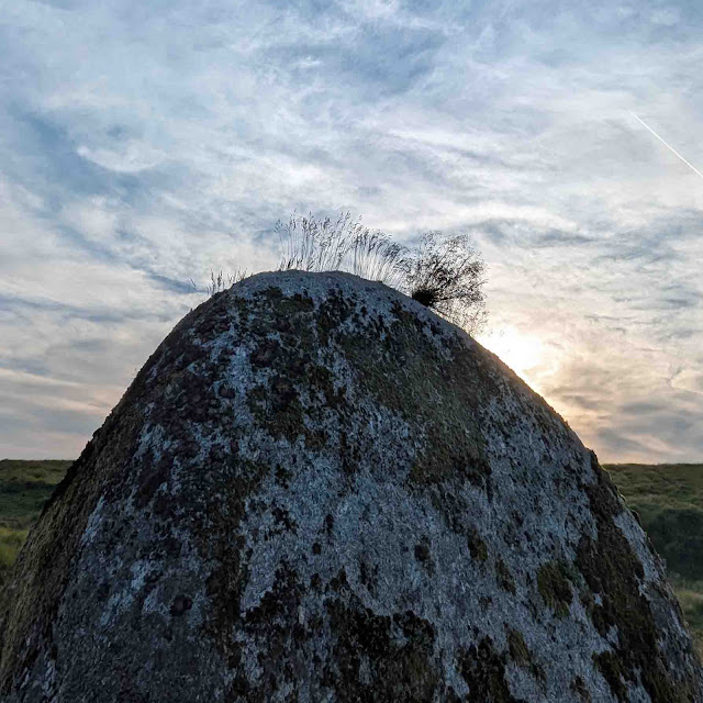 Wednesday 26th June 7pm 24C - wow that's warm! A clear blue evening to set off from the big car park and head down to the leat. Along, along by the wonderful Black Tor Falls and over the steel. Gently over to Hart Tor Brook and the next steel crossing - this one looks like it might not last much longer. A very warm trod up to Cramber Tor for a nice cuppa and views afar. Down the well worn track and back across the brook. Cotton grass everywhere and lots and lots of orchids. There seem to orchids everywhere this year, perhaps they are extending their range. To the enigmatic hairy stone and up to Hart with the sun still high. To the slight track to seek a way across the Meavy only to startle a tiny frog - sorry. This valley is where the heavy horses are hauling timber to drop into the stream to slow the river. Soon it may be even more boggy. To Black Tor past yet more orchids and over to the road. And then, very, very slowly, as is its way, the weather softly changed. The sun eased and the mist rolled in. By the time Leeden was gained visibility was jolly poor. The wild campers seemed well prepared with a huge bottle of water and a cool box. So back to the car park.